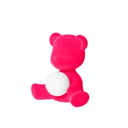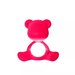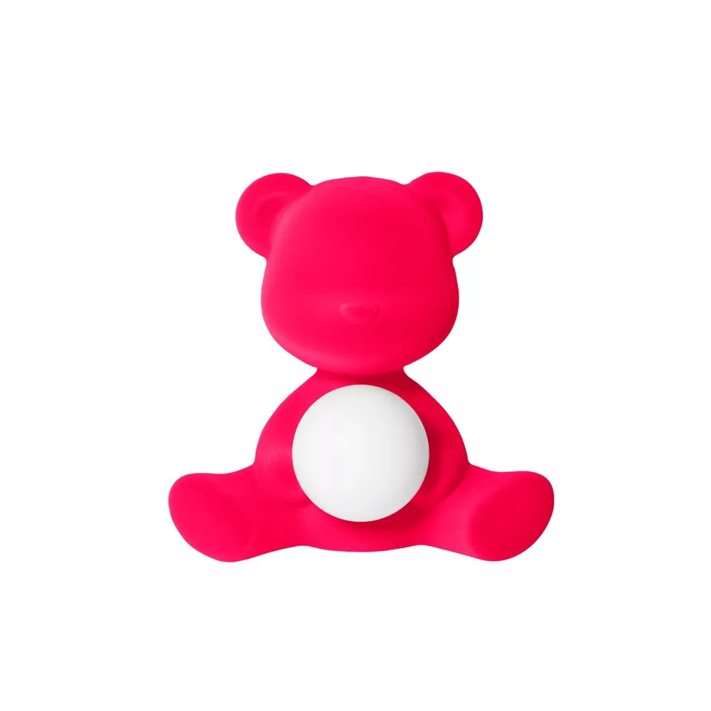 TEDDY GIRL LAMP, VELVET FINISH, RECHARGEABLE LED 25002 - QEEBOO Designed by Stefano Giovannoni, drawing inspiration from a traditional Teddy Bear, Teddy Girl is a wireless and rechargeable table lamp, with a small luminous sphere embraced within. Shy and delicate, it showcases the tender soul of a little teddy bear. With its velvety and soft surface, Teddy Girl is an invitation to sweetness! Material: Polyethylene Dimensions: 35 x 24 x 32 cm Weight: 1.4 kg Battery Autonomy: 16 h Light: White LED / Remote