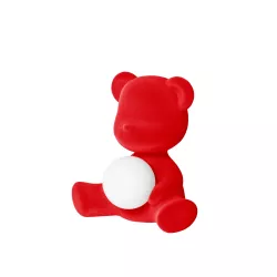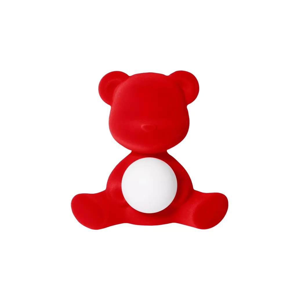 TEDDY GIRL LAMP, VELVET FINISH, RECHARGEABLE LED 25002 - QEEBOO Designed by Stefano Giovannoni, drawing inspiration from a traditional Teddy Bear, Teddy Girl is a wireless and rechargeable table lamp, with a small luminous sphere embraced within. Shy and delicate, it showcases the tender soul of a little teddy bear. With its velvety and soft surface, Teddy Girl is an invitation to sweetness! Material: Polyethylene Dimensions: 35 x 24 x 32 cm Weight: 1.4 kg Battery Autonomy: 16 h Light: White LED / Remote