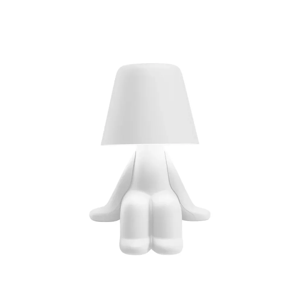 SAM TABLE LAMP, SWEET BROTHERS - QEEBOO Meet the sweet brothers SAM and his siblings, now available in different soft-touch shades. Find them in black, white, light blue, yellow, and terracotta, assuming different postures. They create an animated landscape that characterizes the table and every corner of the house. This family of portable battery-rechargeable LED lamps is equipped with a soft-touch switch. Material: polycarbonate Dimensions: 18.5 x 17.5 x 27.5 cm Weight: 0.55 kg Light: white LED / touch sensor