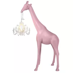 The Giraffe In Love XS lamp by Qeeboo, designed by Marcantonio, reinterprets the iconic giraffe holding a Marie Therese style chandelier with a contemporary and playful twist. In this compact version, it becomes a distinctive and creative design piece, perfect for enhancing interiors or workspaces with personality. Made of polyethylene, it combines lightness and durability, creating a striking decorative element that adds character and originality to any environment.