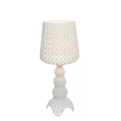 KABUKI TABLE LAMP, 9200 - KARTELL A mini version of the lamp in a complex thermoplastic polymer with a characteristic perforated surface, from which the light diffuses. Dimensions Height: 70 cm Diameter: 30 cm Unit weight: 1,5 kg