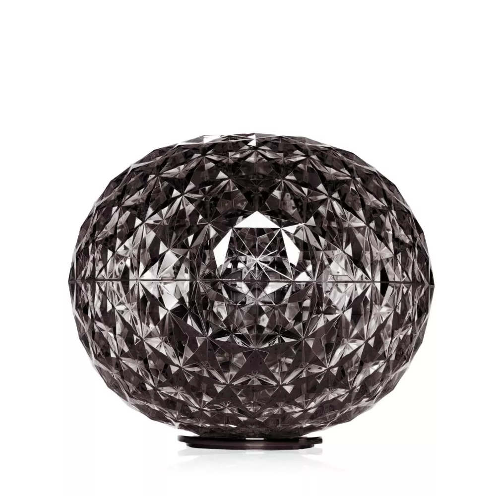 PLANET TABLE LAMP, 9386 - KARTELL Kartell Planet Table Lamp by TOKUJIN YOSHIOKA A complete family of lamps (pendants, low table lamps, and lamps with metal structures) its special feature is the shape of its slightly elliptical diffuser. Its transparent surface, which is many-sided both inside and out, creates a rich tapestry of reflections. Material Structure: Tecnopolimero termoplastico trasparente o colorato in massa Dimensions Height: 27 cm Diameter: 33 cm Unit weight: 2,4 kg