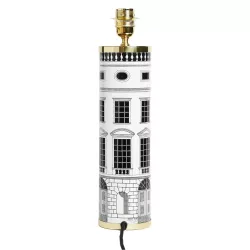 The Architettura lamp base by Fornasetti is a striking decorative object where functionality meets artistry. The cylindrical form, crafted in hand-screened metal, is adorned with a refined architectural motif that creates an endless visual rhythm, turning light into a captivating statement. An artisanal creation that embodies the timeless, visionary spirit of the Atelier.