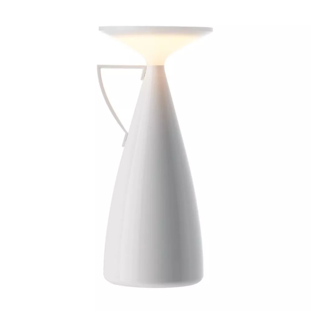 Designed by Philippe Starck, the Camomille table lamp takes inspiration from the shape of a teapot, “pouring” light to create a cozy and intimate atmosphere. Powered by a rechargeable battery, it offers between 50 and 200 hours of autonomy, making it versatile and easy to move. Perfect for both residential and contract spaces, it blends functionality and elegance, becoming a decorative icon that enhances any environment. Made from recycled thermoplastic technopolymer sourced from furniture, automotive, appliance, and packaging sectors, it reflects Kartell’s eco-friendly commitment to giving new life to unused industrial materials while maintaining high aesthetic and structural quality.