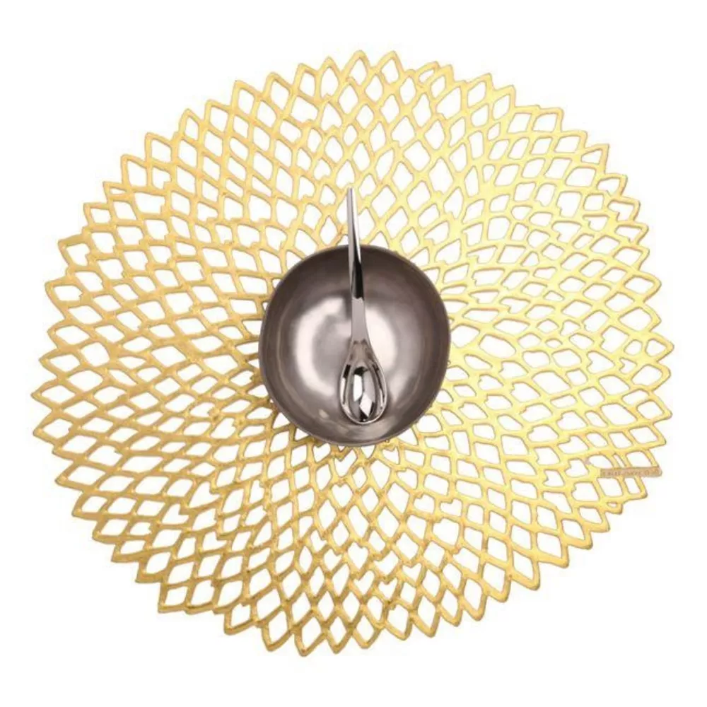 The Dahlia round placemat set by Chilewich is a refined expression of contemporary design and innovative craftsmanship. Featuring an intricate openwork pattern, it recalls the delicacy of lace reinterpreted in a modern way, creating a striking visual effect that enhances every plate. Acting more like a charger than a traditional placemat, it frames each dish with elegance and lightness.