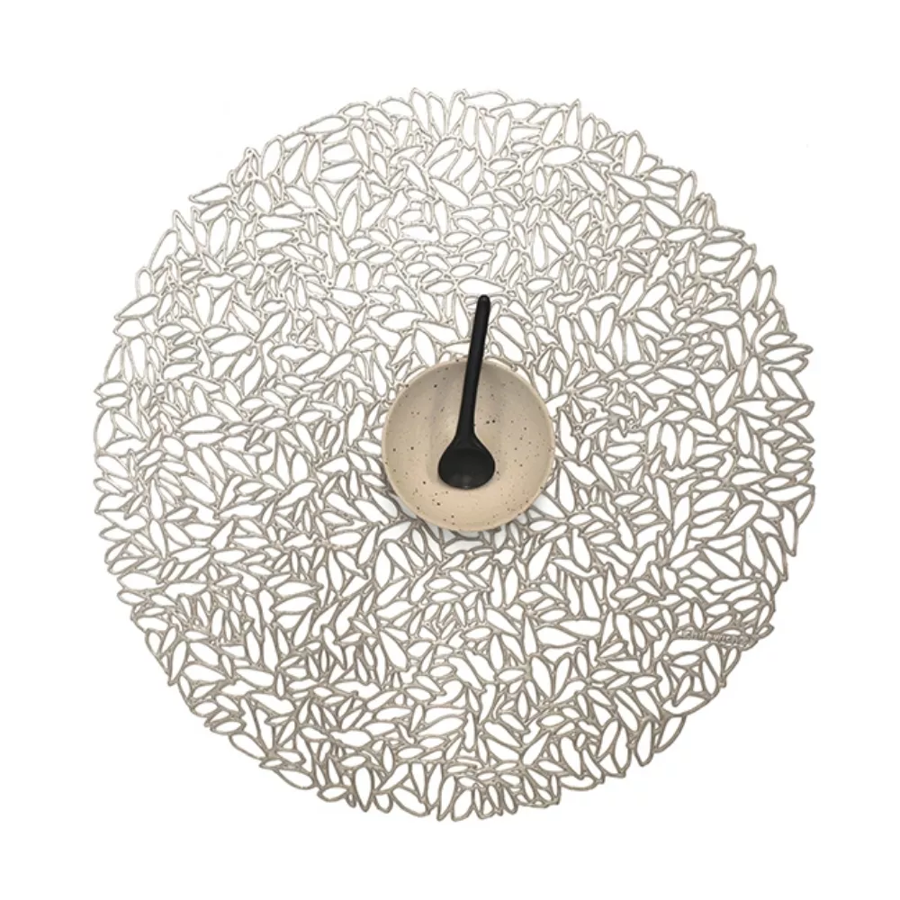 The Petal placemat set by Chilewich brings lightness and contemporary elegance to the table. Inspired by scattered flower petals, these placemats feature a refined openwork pattern that recalls modern lace, creating a delicate yet distinctive visual effect. They can be used as chargers to frame each plate or on their own as decorative placemats, enhancing any table setting with subtle sophistication.