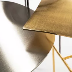 The XXX coffee table series captures attention with the extraordinary contrast between the exquisite finishes and boldly irregular shapes. The refined galvanic finishes - gold, nickel, or black nickel - elegantly cover the wrought iron structure, creating a fascinating blend of luxury and ruggedness.