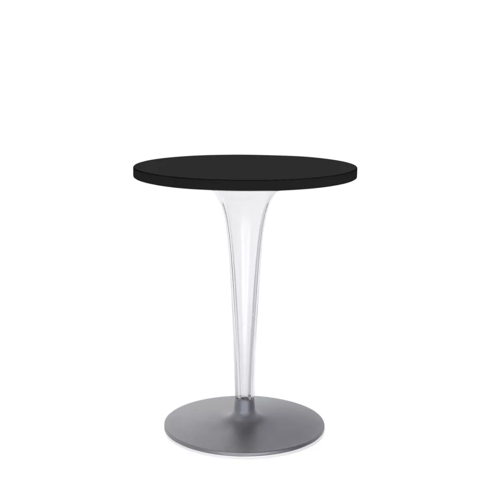 TOP TOP TABLE, 4280 - KARTELL Toptop Table Structure material: Transparent Pmma Top material: Melamine Third Material: Painted Aluminium Fireproof: Not Fireproof Usage: Outdoor Dimensions: H 72 cm, Ø 60 cm This product, given its size and/or value, will have a special shipping cost.