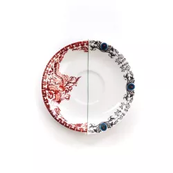 When east and west combine. A collection that reflects ancient historic Western and Eastern ceramic production. Hybrid decorations that come from a complex past that evolve into contemporary shapes. Bone China Porcelain Cup Size: d 10,5 x h 5,7 cm Saucer: d 15 x h. 2,5 cm DISCOVER THE COLLECTION: Hybrid by Seletti