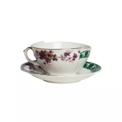 When east and west combine. A collection that reflects ancient historic Western and Eastern ceramic production. Hybrid decorations that come from a complex past that evolve into contemporary shapes. Bone China Porcelain Cup Size: d 10,5 x h 5,7 cm Saucer: d 15 x h. 2,5 cm DISCOVER THE COLLECTION: Hybrid by Seletti