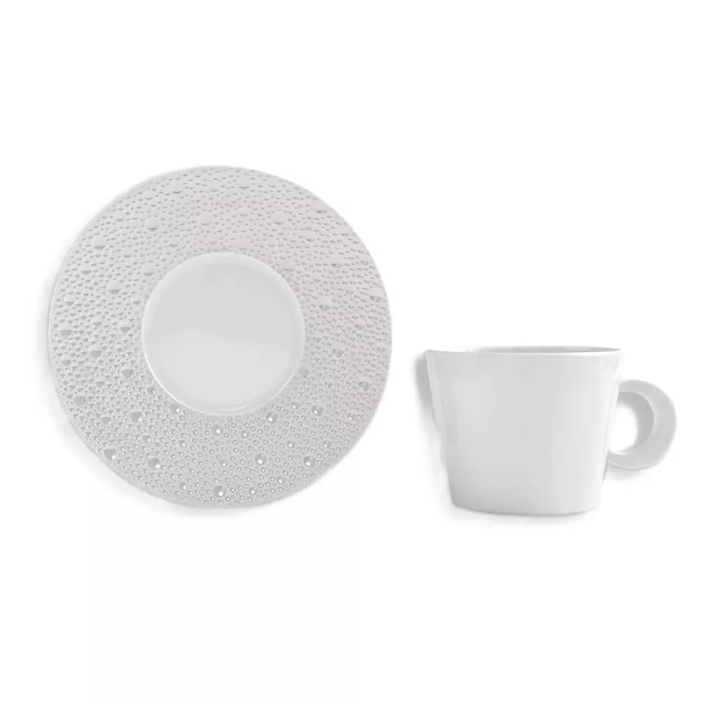 The plates and saucers in the Ecume Perle collection feature a delicate mother-of-pearl finish that adds a subtle iridescence, allowing the decor to softly shimmer. This finish is ideal both as service pieces and for pairing with items from the Ecume white range. Ideal for those who appreciate modern design and the art of dining, the Ecume Perle collection provides the perfect backdrop for elegant meals and special gatherings, making each table setting a statement of style and refinement. Sku: 1975/20454 Material: Porcelain Capacity: 17 cl Made in Limoges, France