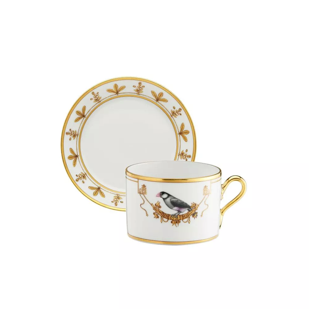 Richard Ginori Voliere Tea cup with saucer Shape: Impero Capacity: cc 220 Material: porcelain , gold trim Hand-decorated