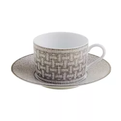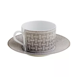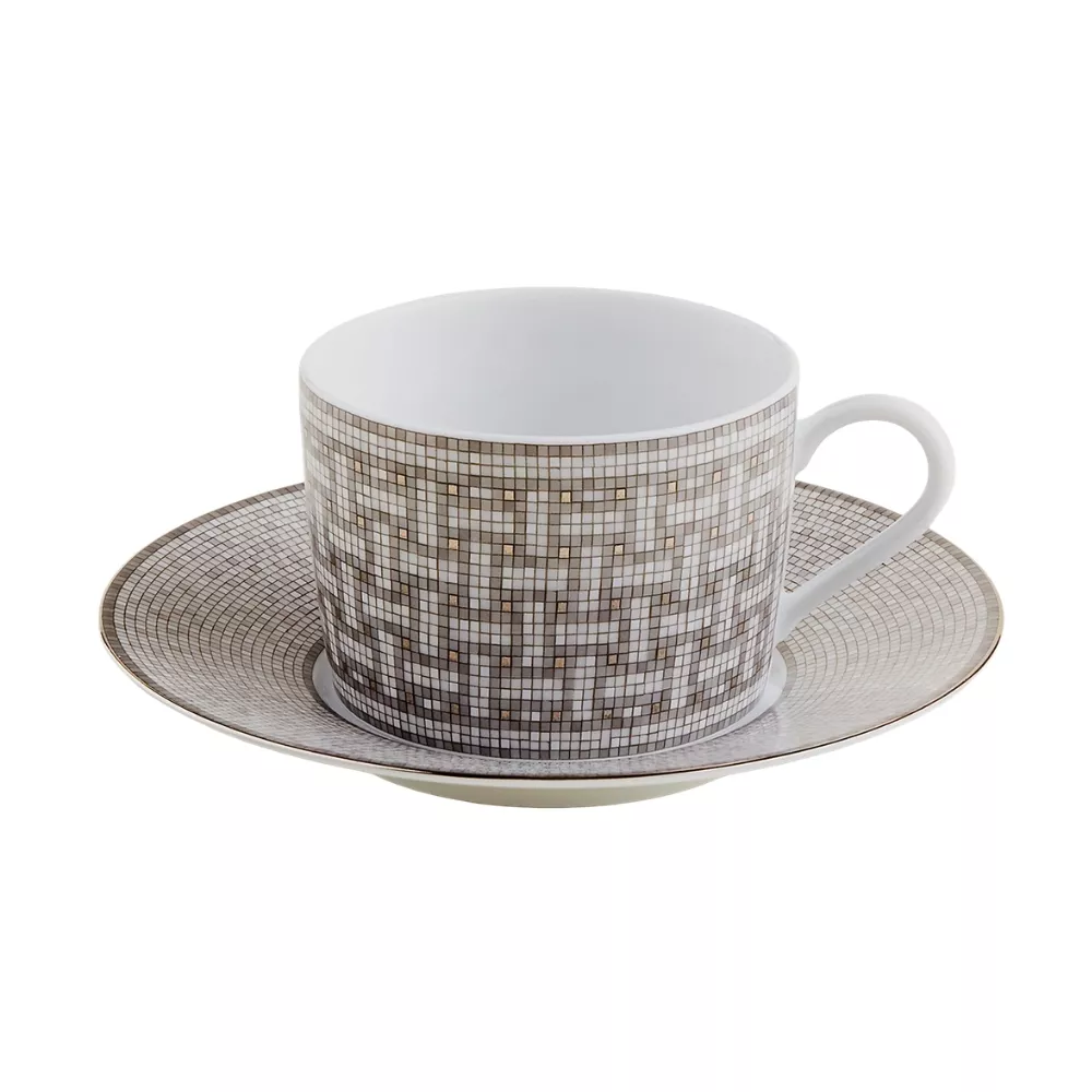 The Mosaique au 24 tea cup and saucer by Hermès expresses timeless refinement and luxury, transforming tea time into an exclusive experience. Crafted in porcelain with screen printed and hand applied decorations, it is enhanced by gold or platinum details that highlight the iconic geometric patterns of the collection.