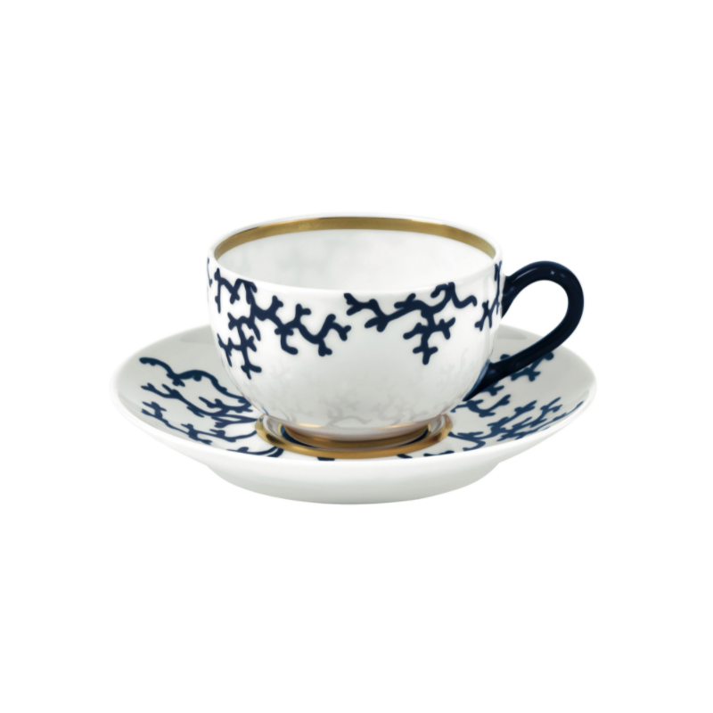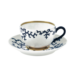 Designed by Alberto Pinto for Raynaud. Cristobal is a dish served with a saturated and opulent design touches that characterize a unique and impactful elegance as a hallmark of this talented decorator. A set available in coral, turquoise and navy for an original and elegant table. Saucer included Design : Alberto Pinto Reference : 025/015 Saucer diameter : 9,3 cm Height : 6,2 cm Cont : 25 cl Material : Porcelain