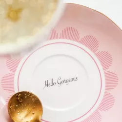 TEA CUP WITH SAUCER, SAFARI TIGER A22004015 - YVONNE ELLEN This pastel-toned tea cup with simple peach polka dot patterns features a cute tiger joyfully showing off its back. The Safari Tiger with saucer is an adorable choice for enjoying tea and making the moment even more enchanting. Material: The cup is made of bone china porcelain Size: Ø 14 x H 8 cm Suitable for hand washing only.