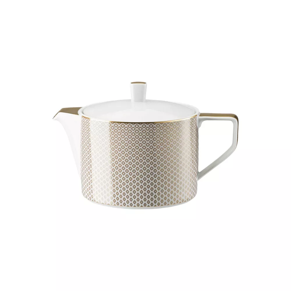 TEAPOT FRANCIS CARREAU BEIGE 10460-404308-14230 - ROSENTHAL Historical references and modern elegance come together in the Carreau decoration on the Francis shape to create a table composition that exudes a classic luxury yet has a light appearance. The interplay of free and solid checkerboard surfaces in royal blue and sensual beige, accented with a subtle golden outline, creates a chromatic effect reminiscent of looking through a kaleidoscope. The sparing use of white surfaces imparts calmness and airiness to the design, while creating an exciting light-dark contrast that beautifully complements the clean lines of the Francis shape. Sku: 10460-404308-14230 Material: Porcelain