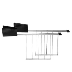 SET OF 2 TOASTER RACKETS, PLISSE MDL08RACK - ALESSI Designed by Michele De Lucchi, the Plissé line combines functionality and an attractive design. As a fabric that a pleating transforms into a 3D object, this product is reminiscent of a haute couture dress, a splendid object to be left exposed in the kitchen. 2 Piece sandwich racks for 2 slices toaster Length : 31,5 cm Width: 18,5 cm Code: MDL08RACK Materials: Steel , Thermoplastic resin