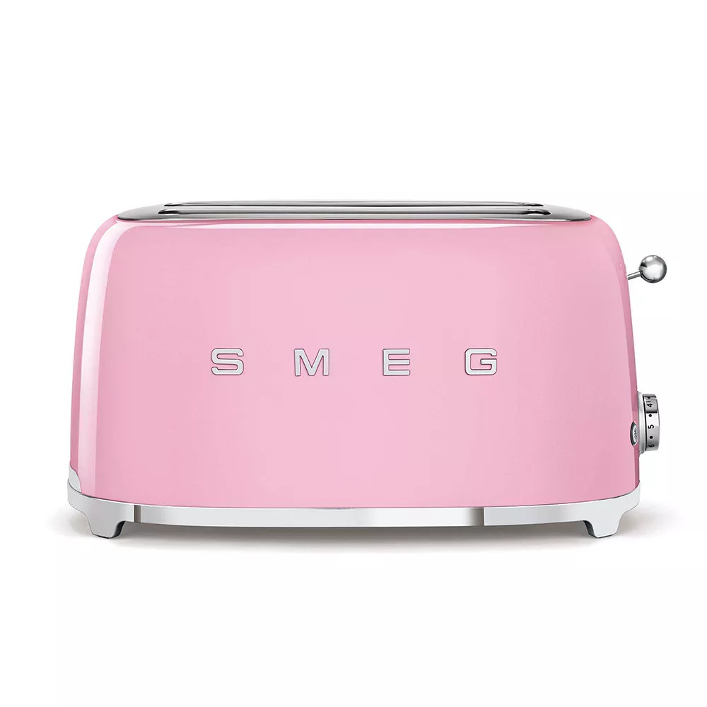 The TSF02 Toaster from Smeg’s 50s Style collection blends iconic retro design with advanced performance. Crafted in painted stainless steel, it features 2 wide 36 mm slots allowing up to 4 slices at once, with automatic centering for perfectly even browning. Six browning levels and 3 preset programs – reheat, defrost and bagel – ensure maximum versatility. Equipped with backlit chrome controls, a removable stainless steel crumb tray and automatic slice pop up, it offers both practicality and safety. A statement kitchen appliance and a perfect design gift idea for lovers of timeless style.