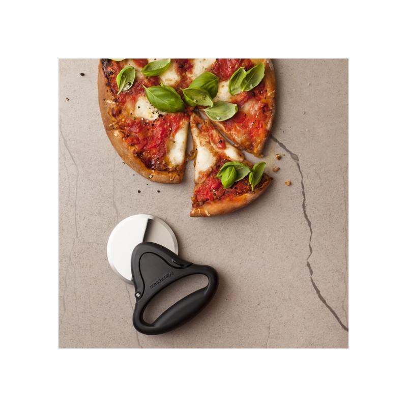 The Microplane pizza cutter, with a large, ultra-sharp stainless steel blade and a soft-touch handle in a modern design, effortlessly slices pizza, quiche, and cake in no time. The pizza cutter is designed so that on one hand, when cutting crispy dough, power is optimally transferred, and on the other hand, it is very easy to disassemble. Simply open the hook to easily remove the blade for quick and simple cleaning. Dimensions: 16.5 x 13 x 2.5 cm Color: Black SKU: 48005 Simply remove the blade for easy cleaning. Convenient cleaning: Just rinse under running water and allow to air dry naturally.