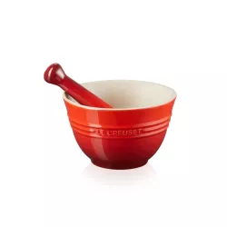 STONEWARE PESTLE AND MORTAR - CERISE
