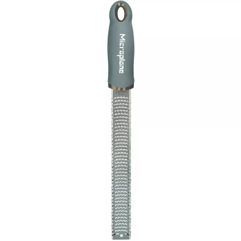 The iconic Premium Classic Zester from Microplane has revolutionized the kitchen with its long, narrow design and ultra-sharp photo-etched stainless steel blades – made in the USA. With 400 precision teeth, it effortlessly grates citrus zest, hard cheeses, chocolate, spices, truffles, nuts, and more.