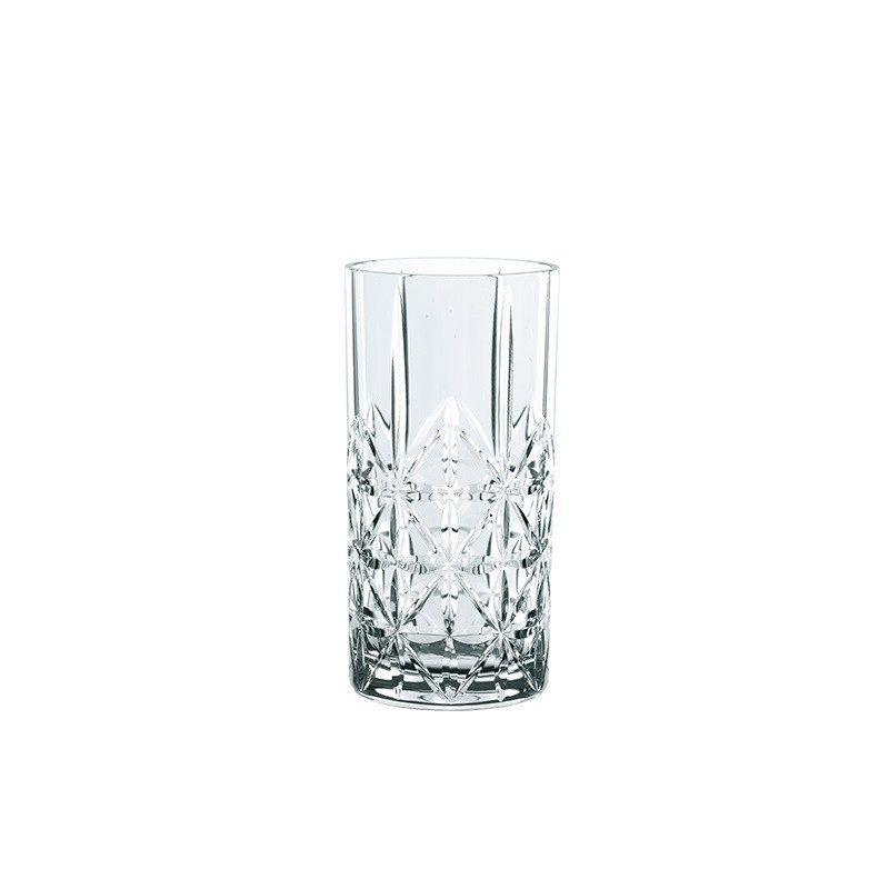 SET OF 4 LONGDRINK GLASSES HIGHLAND, 97784-0 - NACHTMANN Nachtmann Highland longdrink glasses are perfect for cocktails, juices and soft drinks. Classical and yet distinctive in design, they are the perfect way in which to enjoy drinks with friends and good company. The glass set includes four longdrink glasses with the attractive cut designs "Cross", "Diamond", "Square" and "Straight". Capacity: 445 ml Dimensions: H 151 mm, Ø 77 mm Material: crystal glass