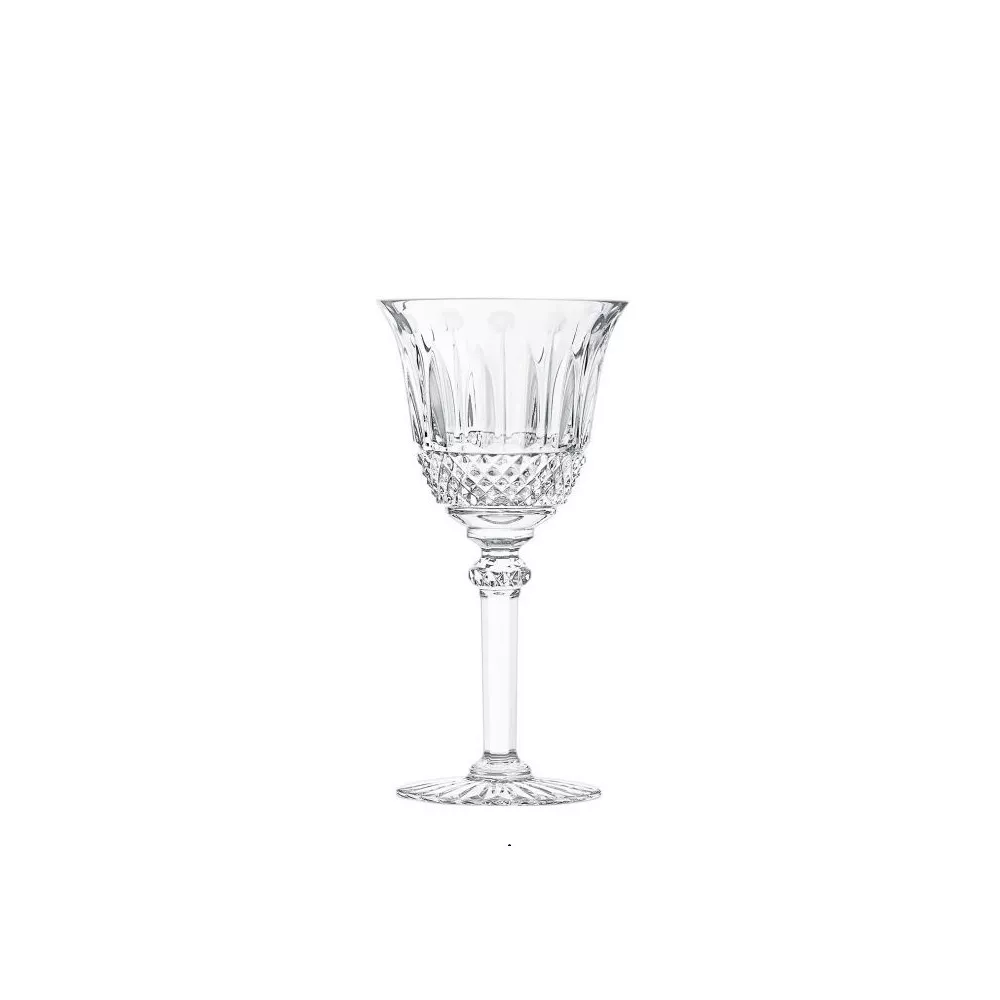 The Tommy collection, a classic of the Saint-Louis production since 1928, is striking for its elegance and richness. For its realization, the maison uses three different cutting techniques: faceted, ball and diamond. The fine workmanship of the crystal gives splendor to the table, making it appreciate its magic. Tommy Porto Goblet No. 5 Dimensions: Height 139 mm, Diameter 68 mm, Volume 9 cl Material: Crystal glass Product Code: 12400500