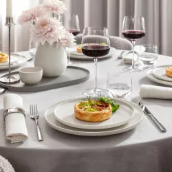 The set of 4 Afina water glasses by Villeroy & Boch combines elegance and contemporary refinement in a luminous and distinctive design. Crafted from crystal, they feature fine contours and delicate decoration that enhance any table setting with sophisticated brilliance. Perfect for everyday use or special occasions, they provide a pleasant tactile experience and elevate every convivial moment. A versatile and elegant addition to the table, also ideal as a perfect gift.