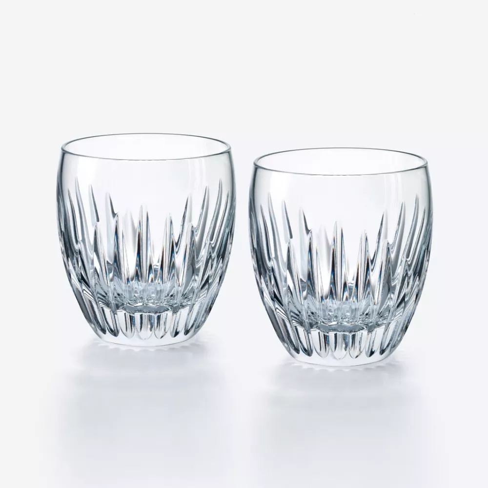 the Massena tumbler is the result of meticulous craftsmanship by Baccarat. Deep, organ-shaped cuts radiating from the base are directly engraved on the transparent crystal. The intricate details give the Massena tumbler a barrel-like appearance and make its structure tactile. This skilled craftsmanship enhances the smoothness of the upper part of the glass. Its sleek shape and prismatic qualities make it perfect for any celebration or special evening. The Massena tumbler is just one of the items in the Massena bar and tableware collection, which includes wine glasses, highball glasses, and a decanter, all characterized by extremely precise surfaces. Massena is the collection designed for rare spirits enthusiasts and lovers of the most imaginative cocktails.
