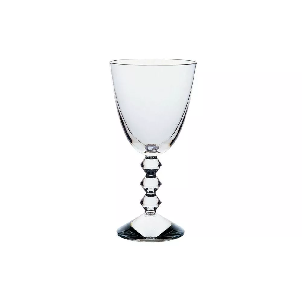 the véga transparent crystal glass features a refined and contemporary design. its geometric stem immediately catches the eye: three diamond-shaped forms stacked together resemble elegant pearl necklaces or the geometric totems of brancusi. created for baccarat by savinel & rozé, the contrast between the smooth upper part and the angular lower part stands out, with the curved bowl opposing the sharp zig-zag lines of the stem. this innovative shape enhances the experience of sipping fine wine. the véga collection also includes a champagne flute, martini glass, and other bar and tableware items. height 18 cm weight 0.30 kg diameter 9 cm material crystal glass usage wine glass color transparent made in france year of creation 1994 product designer savinel & rozé