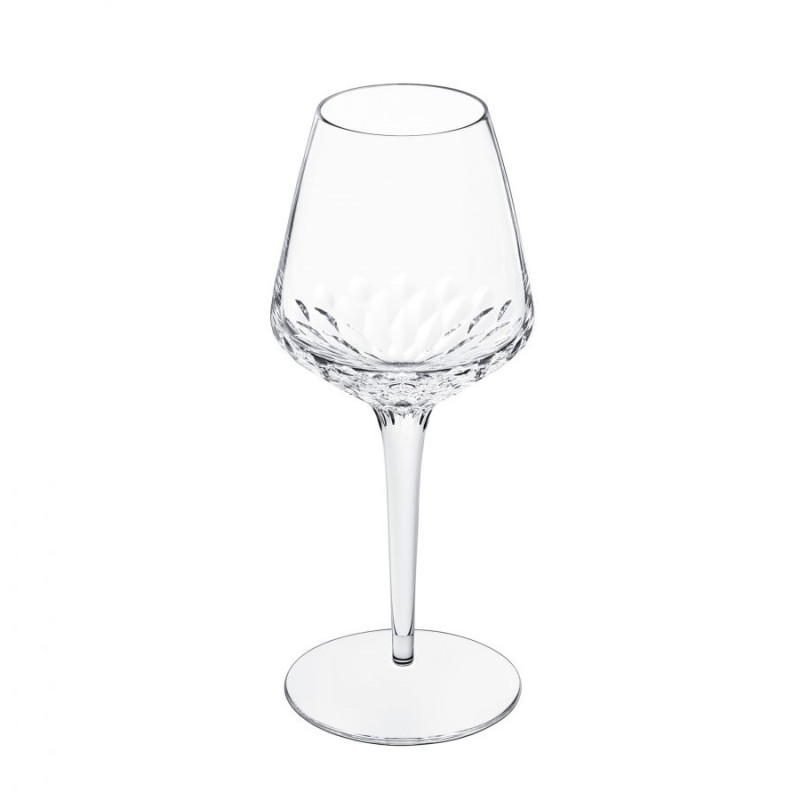 NE GOBLET 4, FOLIA 15000400 - SAINT LOUIS The Folia collection, which spans across various disciplines, takes inspiration from the lush forests surrounding the Saint-Louis manufacturing facility. Noé Duchaufour-Lawrance was inspired by the natural beauty of the forest and sought to combine the luminosity of crystal with the durability of ash wood. St. Louis Folia pays homage to the foliage found in the Moselle forest and celebrates creative inspiration. This collection features 25 pieces of tableware, decor, lighting, and furniture, all showcasing a modern interpretation of nature. Height 8.5 in Diameter 3.5 in Volume 10.1 oz