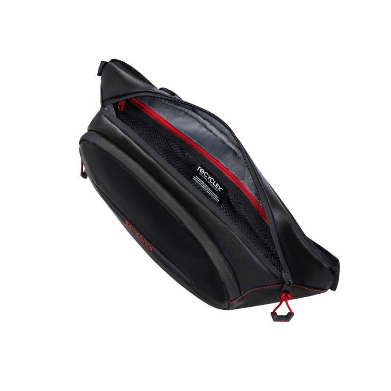 Perfect for those who love to travel light, the Ecodiver bum bag blends practicality with a stylish design, focusing on security and comfort. Made from recycled materials, it aligns with Samsonite's "Responsible Journey" philosophy. Its water-resistant coating makes it an ideal choice for outdoor adventures and worry-free city strolls.