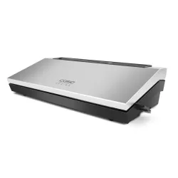 Secure vacuuming with double weld seam Functional, flat design for very quiet working Weld seam of max. 30 cm for any length, ideal for fish and meat Easy to clean thanks to removable vacuum chamber Vacuum regulation: use the stop button to regulate the vacuum strength Piston pump (9L / min) and powerful motor Patented locking handle for simple sealing Electronic temperature monitoring Varied functions: manual welding, automated vacuuming and welding Incl. 10 bags 20 x 30 cm