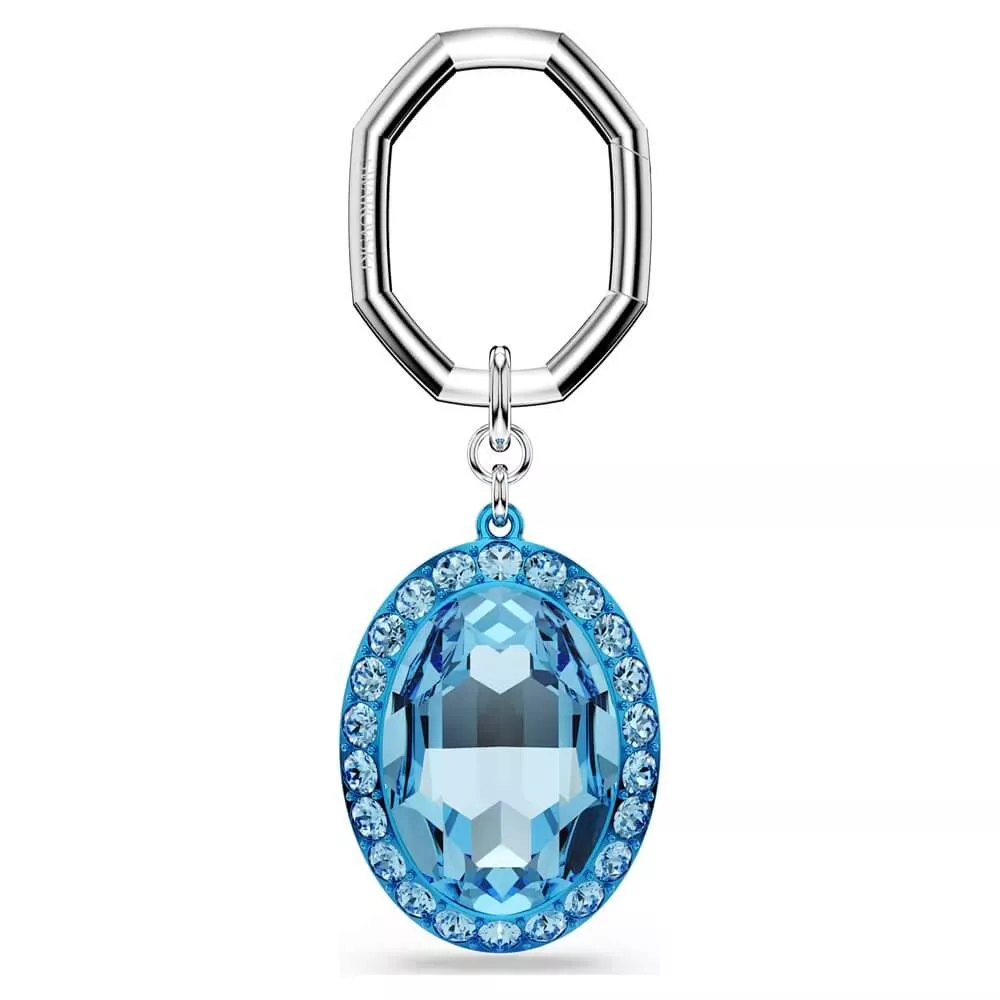 Key ring, Oval cut, Blue, Mixed metal finish Swarovski Article no.: 5666644 Inspired by collection: Lucent Size: 8.4 x 2.9 cm Material: Crystals, Mixed metal finish Color: Blue Clasp type: Key Ring