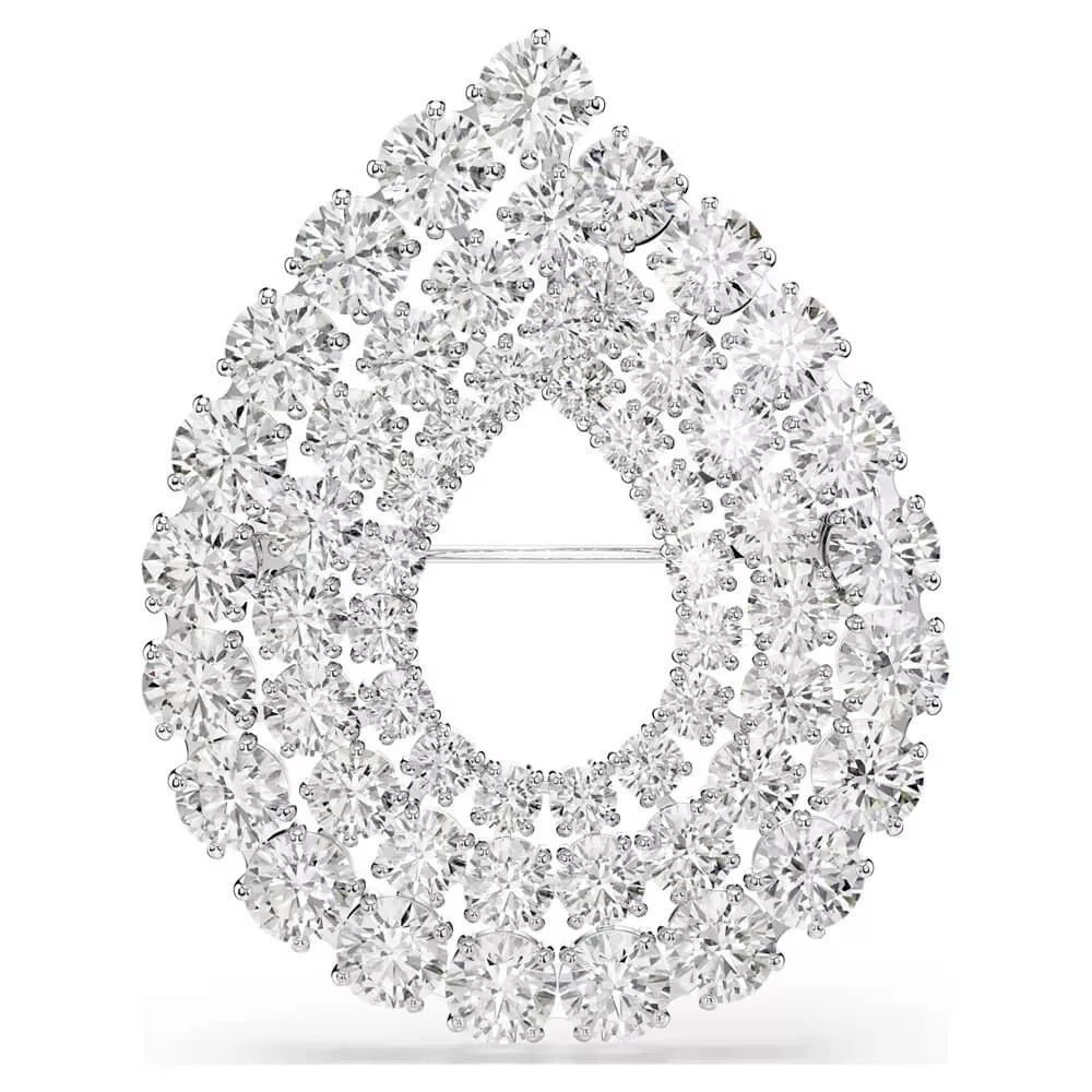 An elegant celebration of light and sophistication. This dazzling raindrop-inspired brooch captivates with three Round-cut Swarovski Zirconia rings, arranged in varying sizes for a refined effect. Rhodium-plated, it showcases Swarovski's craftsmanship and pairs beautifully with matching earrings for a flawless look.