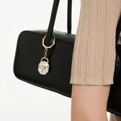A refined gold-tone plated keychain in the shape of a padlock, symbolizing enduring love and unbreakable friendship. The octagonal link connects to a large crystal with a heart at its center, creating a luminous and meaningful accessory. An elegant detail that makes the perfect gift to express genuine emotions.