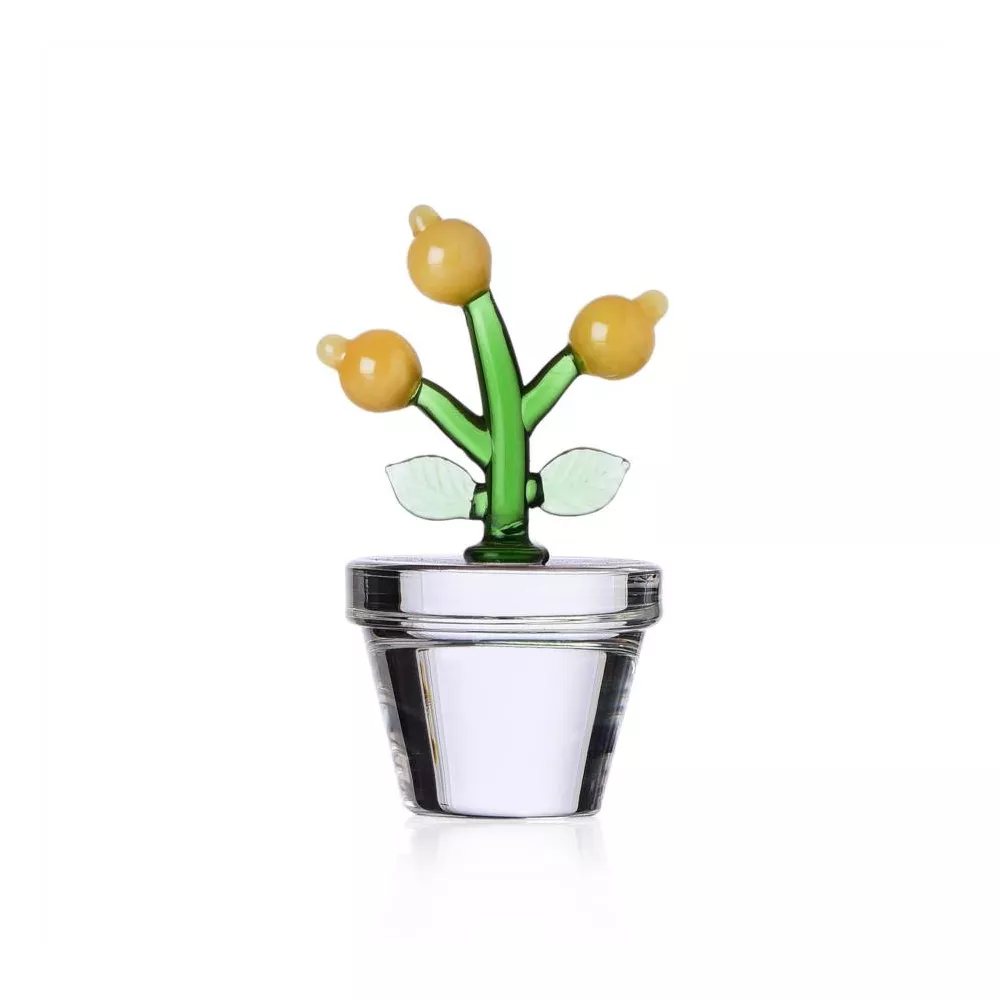 YELLOW FLOWER PAPERWEIGHT FRUITS & FLOWERS 093522004 - ICHENDORF MILANO Collection: Fruits and Flower Design: Alessandra Baldereschi Color: Clear Green Yellow Material: Borosilicate Glass Craftsmanship: Hand-blown and lampworked Dimensions: H. 10