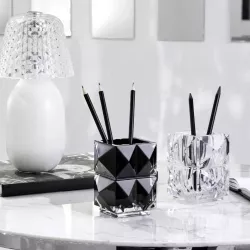 The Louxor Pencil Holder by Baccarat, designed by Thomas Bastide, combines functionality with refined design. Crafted from fine crystal, its faceted cuts play with light to bring elegance to any desk. A luxury accessory that elevates the workspace, available in clear or black to suit every style.