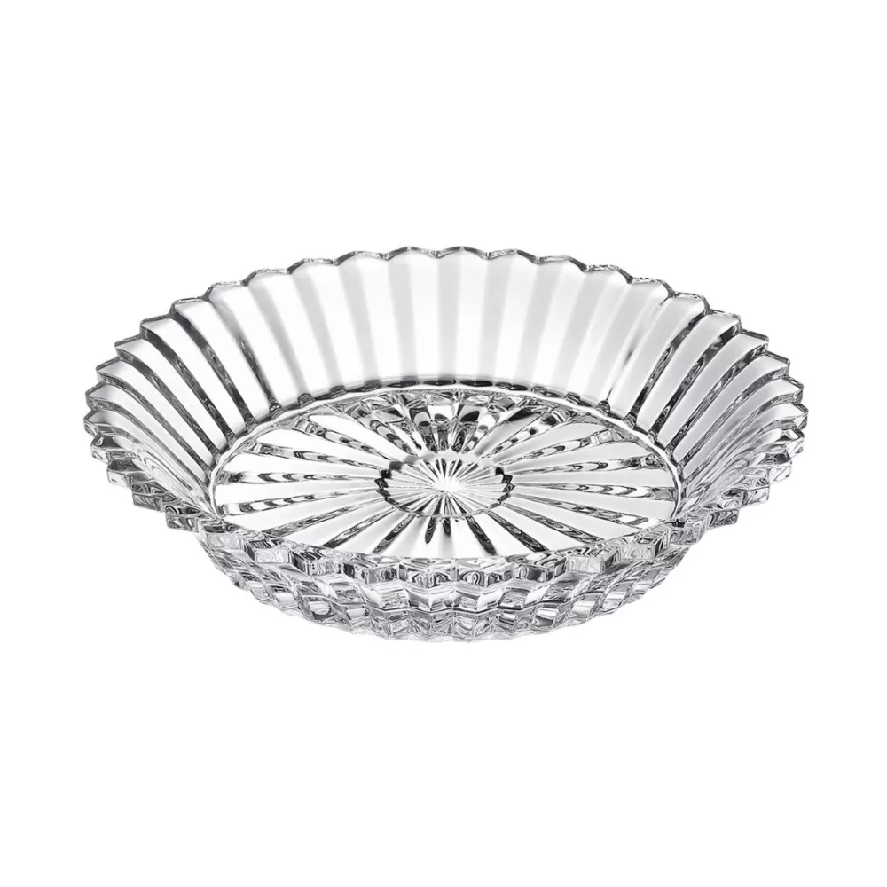 The Mille Nuits salad plate by Baccarat showcases artisanal mastery and dramatic elegance through hand sculpted crystal with delicately rippled edges inspired by brisee pastry. The engraved rim forms a perfectly symmetrical frame, while concentric rings at the base and radiating lines reveal the exceptional prismatic qualities of Baccarat crystal. Designed by Mathias and made in France, it is ideal for refined receptions and sophisticated table settings, evoking the oriental inspiration behind the Mille Nuits name.
