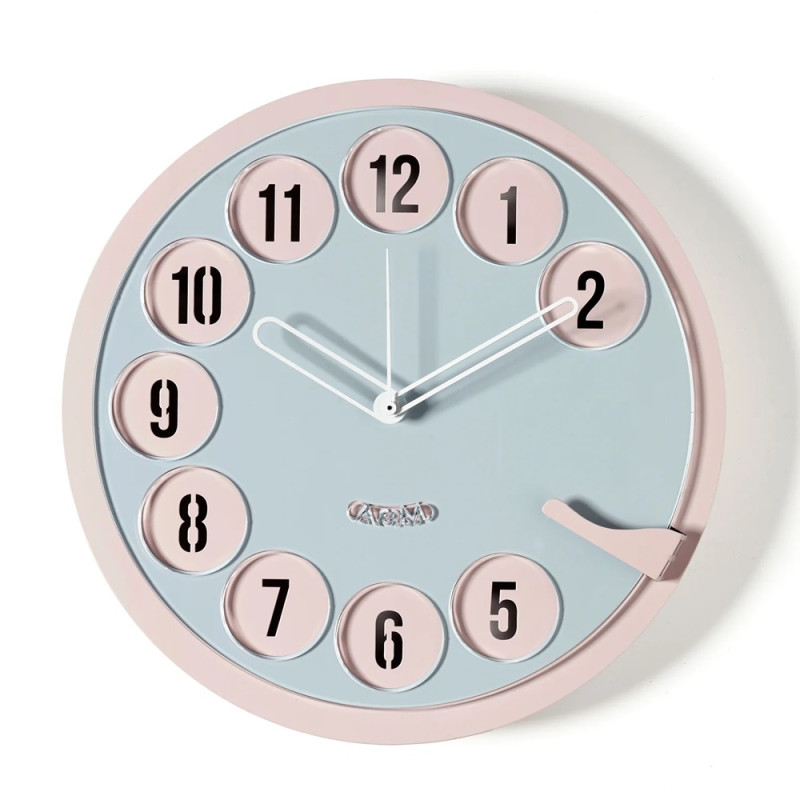 The Call Me wall clock is a charming tribute to the vintage rotary telephones, blending nostalgic design with a modern aesthetic. Its dial features circled numbers that replicate the look of old phone dials, enhanced by a plexiglass layer for added depth and elegance.