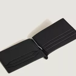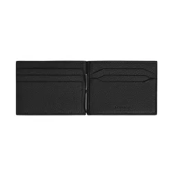 This Montblanc bi fold wallet with money clip conveys functional elegance designed for a clean and confident style. Crafted from black grained leather, it stands out for its refined texture and metal money clip that reinterprets a classic design with a modern touch. The slim profile and interior layout with six card slots ensure everyday practicality and organization, reflecting the Maison craftsmanship and understated sophistication. A distinctive leather accessory, also conceived as the perfect gift.
