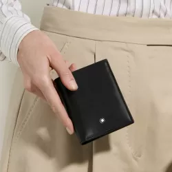 The Meisterstuck Compact Wallet by Montblanc embodies contemporary elegance in refined Sartorial embossed leather, enhanced by sophisticated black metal fittings. The contrast between the black exterior and ink blue interior adds depth and distinction to this essential accessory. Compact yet highly functional, it features six card slots along with compartments for cash and receipts. A rear metal ring allows the wallet to be attached to a hook or lanyard, keeping everyday essentials close at hand. A timeless piece designed to combine style and practicality.