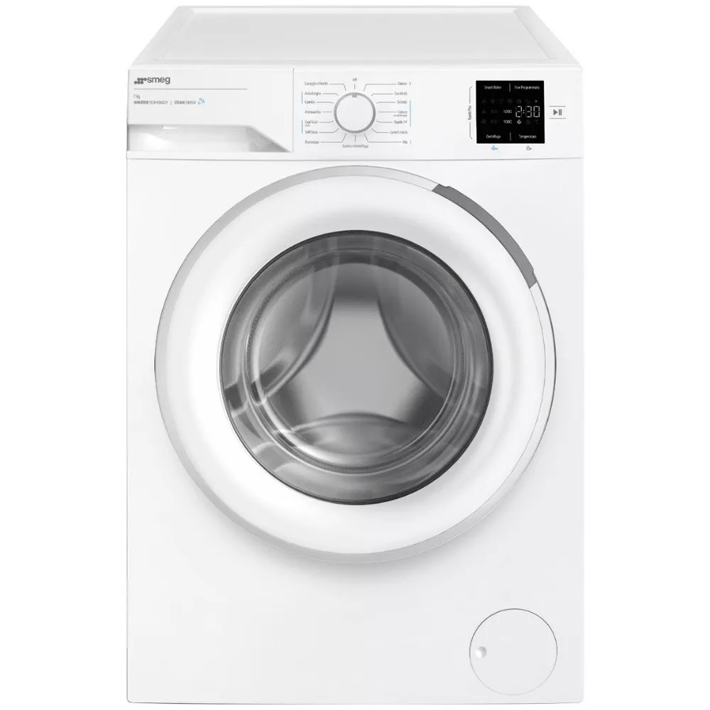 Efficiency, practicality and clean design come together in the SMEG WMC72SEA freestanding washing machine. With a 7 kg capacity and a 49-liter stainless steel drum, it is designed to handle daily laundry needs with ease and performance. The intuitive LED display allows for precise control of temperature and spin settings, up to 1200 rpm, with customizable programs for optimal fabric care.