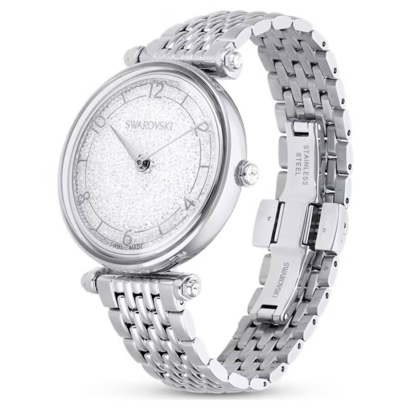 Collection: Crystalline Wonder Color: Silver tone / Rose gold tone Case size: 35 mm Watch strap length: 16.5 cm Material: Crystals, Stainless steel / Rose gold-tone PVD Clasp type: Fold over clasp Strap material: Metal Made in: Switzerland Mechanism: Quartz