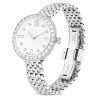 This Certa watch is creatively crafted to accentuate any outfit. The round 30mm case is made in stainless steel and features a bezel set with a pavé of 30 crystals. Beneath the mineral glass, a mesmerizing guilloché dial is revealed, with the Swarovski swan logo at 12 o’clock, along with indexes created from round and baguette crystals. There is also a single crystal set in the watch’s crown. For style around the wrist, the watch is presented on a seven-link bracelet in stainless steel. This Swiss made watch is water resistant to 50m and is designed to keep you on time for everyday occasions with exquisite sophistication. Article no.: 5673022 Collection: Certa Material: Crystals, Stainless steel Color: Silver tone Strap material: Metal Made in: Switzerland Mechanism: Quartz