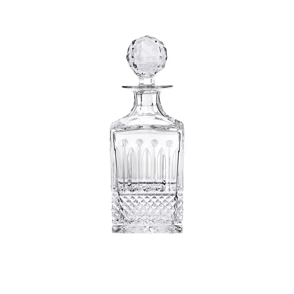 The Tommy collection, a classic of the Saint-Louis production since 1928, is striking for its elegance and richness. For its realization, the maison uses three different cutting techniques: faceted, ball and diamond. The fine workmanship of the crystal gives splendor to the table, making it appreciate its magic. Tommy Whisky Square Decanter Tommy Dimensions: Height 239 mm, Volume 65 cl Material: crystal Product code: 12420000