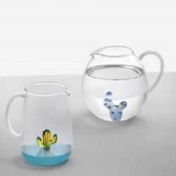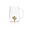 AMBER CACTUS PITCHER, DESERT PLANTS, 09352109 - ICHENDORF MILANO The pitcher, equipped with a milky white handle, features a green and amber cactus inside the glass, adding a naturalistic detail that is both original and light and elegant. This object is perfect both as a functional element on a dining table and as a decoration for the home. The Desert Plants collection includes a variety of elements that evoke nature, with colorful cacti creating an imaginary landscape atmosphere on the table. The master glassblowers handcrafted the pitcher using perfectly transparent blown glass. Dimensions: H. 18.5 - L. 10 L. 16,0 cm Design by: Alessandra Baldereschi Handcrafted borosilicate glass blown by lampworking Capacity: 1.75 liters Dishwasher safe at low temperatures (recommended 40°).