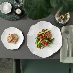The Pura Bread Plate 10-4466-2660 by Villeroy and Boch completes the table setting with understated contemporary elegance. Crafted in premium porcelain, its silky texture and pure white surface enhance every detail like a blank canvas. The fluid lines evoke the lightness of a lotus leaf gliding on water, creating a harmonious and nature inspired silhouette. Ideal for bread, small bites or appetizers, it adds balance and refinement to any table and makes a refined gift idea for lovers of minimalist design.