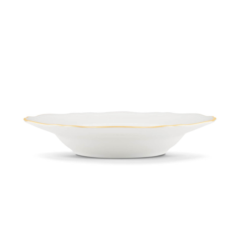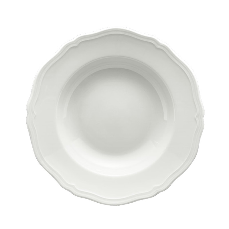 24 CM SOUP PLATE, ANTICO DOCCIA - RICHARD GINORI Doccia is an extraordinary place, a true paradise where, back in 1735, the artistic and entrepreneurial intuition of Marchese Carlo Ginori gave birth to the historic Manifattura, the factory of white gold, becoming our home. The Antico Doccia shape, born in that moment, has left an indelible mark in defining Ginori's true essence as a leader in the field of excellence in the production of pure porcelain and design. Its curved lines and the profile inspired by late-Baroque Florentine silverware are the brilliantly simple ingredients that still make Antico Doccia a timeless style today. The essential and pure white evokes a sense of coming home, to a place that is uniquely ours and never ceases to fascinate. Also available with decorated rim: Corona oro, Corona Blue cobalto and Platino Dimensions: 24 cm Material: Pure White Porcelain DISCOVER THE COLLECTION: Antico Doccia Ginori