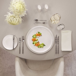 The Afina flat plate by Villeroy & Boch is more than just tableware; it embodies elegance and style. With a unique design concept, this plate combines minimal forms with sophisticated details, featuring a modern coupe shape with a raised rim and sunray-inspired ring relief. Ideal for everyday pleasure, it’s crafted from Premium Porcelain, ensuring durability and a delightful tactile experience. Suitable for both dishwasher and microwave, it's the perfect choice for a refined table setting.